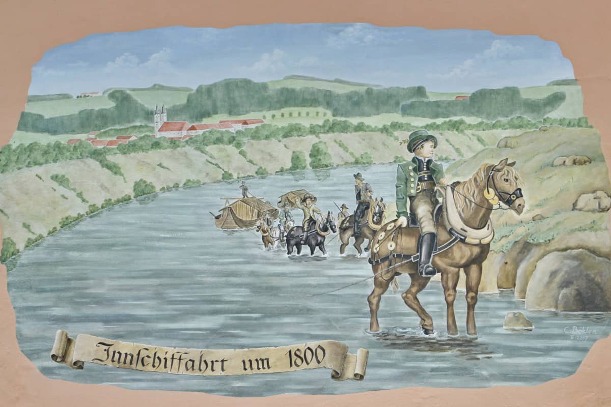 Gemälde einer historischen Innschifffahrt bei Gars am Inn, © by Inn Musuem Rheinheim