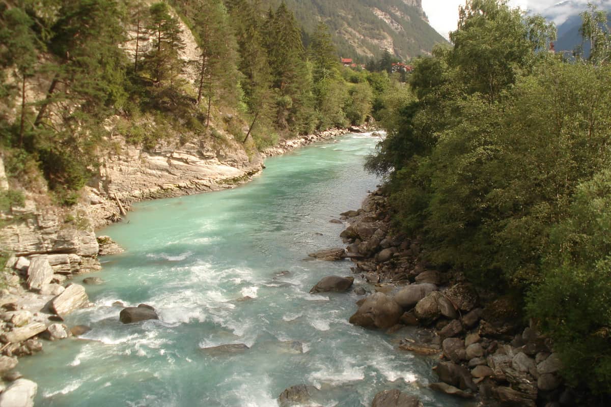Am natürlichsten zeigt sich der Inn heute noch dort, wo alles begann – seinem Ursprung in der Schweiz. Im Kanton Graubünden bei Maloja findet sich auf 2.484 Metern Höhe der Lunghinsee. Dort entspringt der Inn. Dabei bildet der Lunghinpass einen der wichtigsten Dreifach-Wasserscheidepunkte des europäischen Festlandes. Hier kommen drei Wasserscheidelinien an einem Punkt zusammen – ähnlich wie bei einem Dreiländereck. Am Lunghinpass treffen sich die Wasserscheiden zwischen den drei größten Meeren, die Europa umgeben. Von hier aus bahnt sich das Wasser seinen Weg in drei verschiedene Flusssysteme: nach Norden über den Rhein bis in die Nordsee, nach Süden über Comer See und Po bis ins Mittelmeer und nach Osten über den Inn in die Donau und weiter bis ins Schwarze Meer. Der Inn selbst verbindet auf einer Gesamtstrecke von 517 km drei Länder: Die Schweiz, Österreich und Deutschland. In Passau endet der Inn – wiederum in einer dreifachen Flussmündung – wo er zusammen mit der schwarzen Ilz in die blaue Donau fließt.