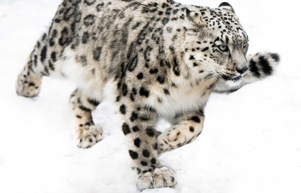 Tolle Jäger sind Schneeleoparden nicht nur, weil sie fast lautlos schleichen und schnell laufen können, sondern auch, weil sie bis zu 15 Meter weit springen. Ihr langer Schwanz hilft ihnen dabei, das Gleichgewicht zu halten.
