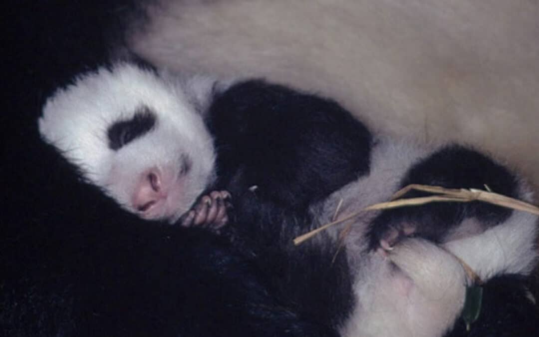 Pandas bekommen alle zwei bis drei Jahre meist nur ein einziges Junges. Sie bringen den Nachwuchs in einem selbstgebauten Nest in einem hohlen Baumstamm oder einer Felshöhle zur Welt. Die Babies kommen nackt und blind zur Welt und sind ohne Fell noch ganz rosa.
