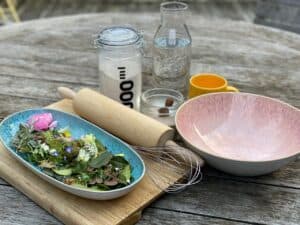 - Naturmaterialien (Blätter, Blüten, Steinchen, Muscheln, …)