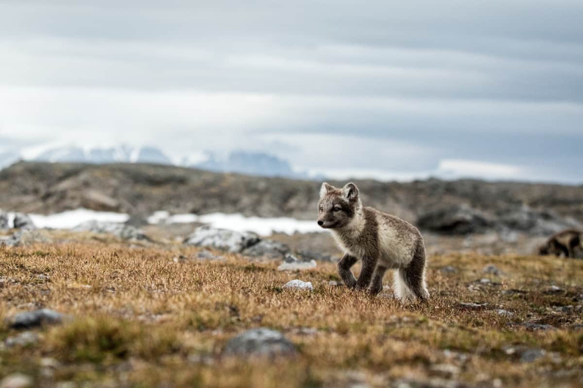 Polarfüchse sind die einzigen Wildhunde, die ihre Fellfarbe der Jahreszeit anpassen. Im Sommer tragen sie Graubraun, im Winter Weiß. So sind sie das ganze Jahr über perfekt getarnt!