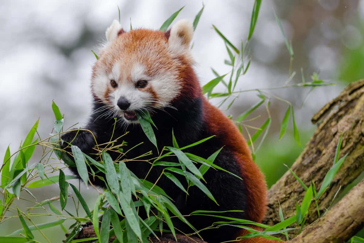 Ich kann nur sagen: ich bin eindeutig ein Raubtier. Aber mein Gebiss ist auch dafür gebaut, Pflanzen zu fressen. Für die Futtersuche brauche ich ungefähr den Abend und die halbe Nacht. Am liebsten mag ich Bambussprößlinge! In Nepal nennt man mich daher auch “Nigalya ponya”, den Bambusesser. Gelegentlich schmecken mir auch Wurzeln, Beeren, Samen und Nüsse. Und selten auch Vogeleier oder Mäuse.