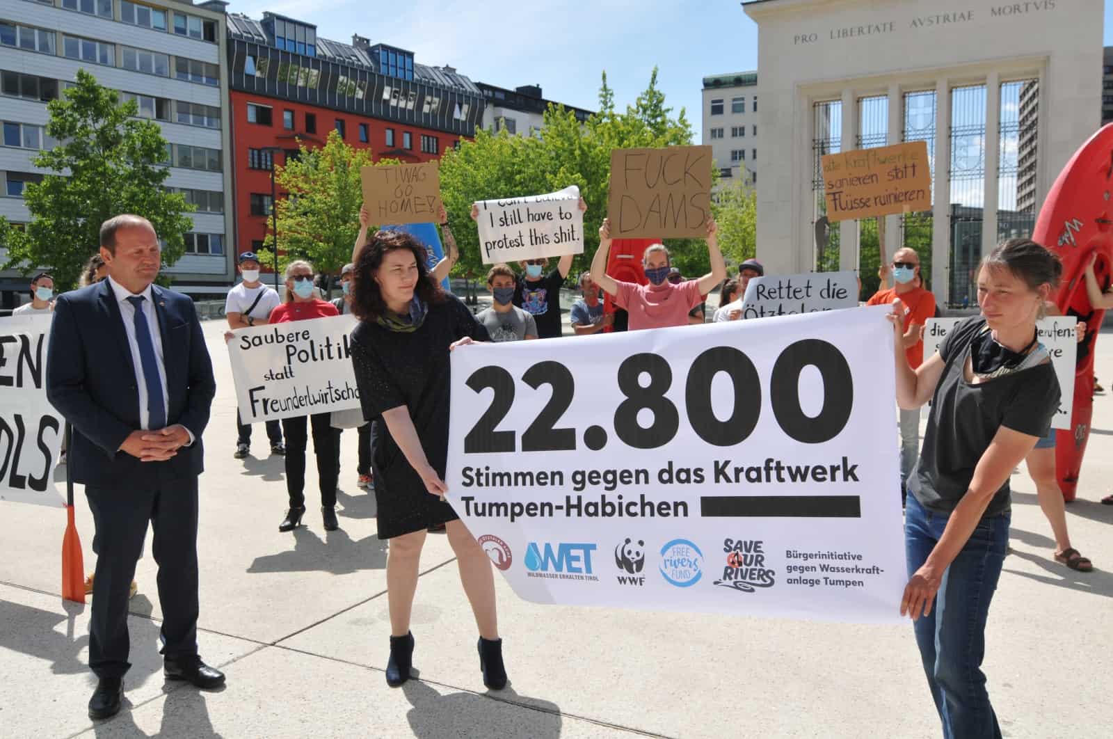 Die korrekt angemeldete Kundgebung samt Petitionsübergabe an Geisler und Landeshauptmann-Stellvertreterin Ingrid Felipe richtete sich gegen das Kraftwerk Tumpen-Habichen, das trotz offener Rechtsfragen seit März gebaut wird und ein wertvolles Flussjuwel für immer zu zerstören droht. Die Ötztaler Ache zählt zu den schutzwürdigsten Flüssen Österreichs, das Land Tirol selbst hat sie als „einzigartig“ eingestuft. Erst vor kurzem hat eine aktuelle BOKU-Studie ergeben, dass bereits 60 Prozent der heimischen Fischarten in Flüssen als gefährdet gelten. „Die Tiroler Landesregierung sollte endlich ihre verfehlte Naturschutzpolitik ändern anstatt legitimen Protest gegen die Wasserkraft zu verunglimpfen“, sagt WWF-Geschäftsführerin Andrea Johanides.