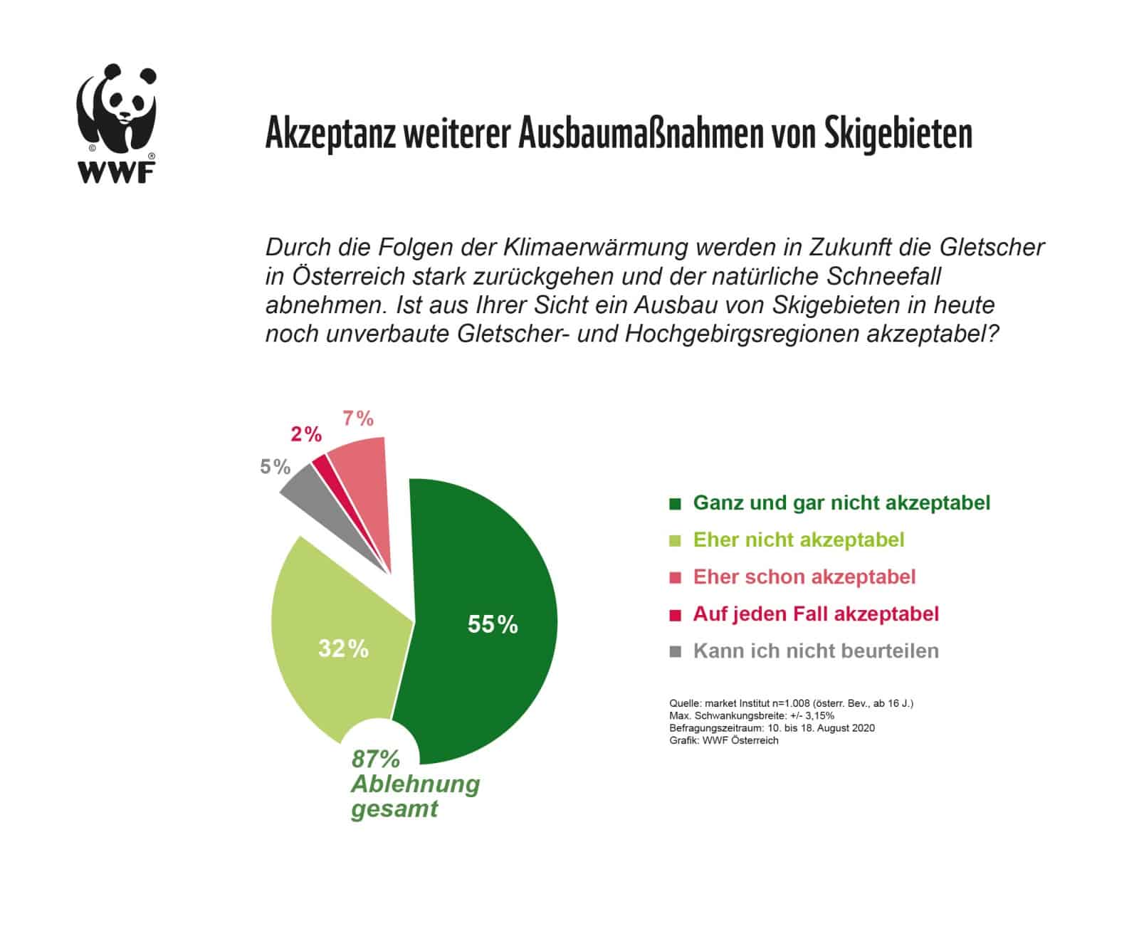 Grafik: Akzeptanz weiterer Ausbaumaßnahmen von Skigebieten, © by WWF